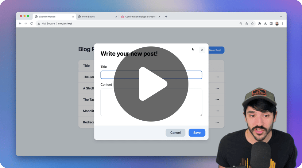 No worries. We cover all that and a bunch more. Along the way, you'll learn how I like to structure forms in my Livewire apps and use things like Form Objects to make it all sing.