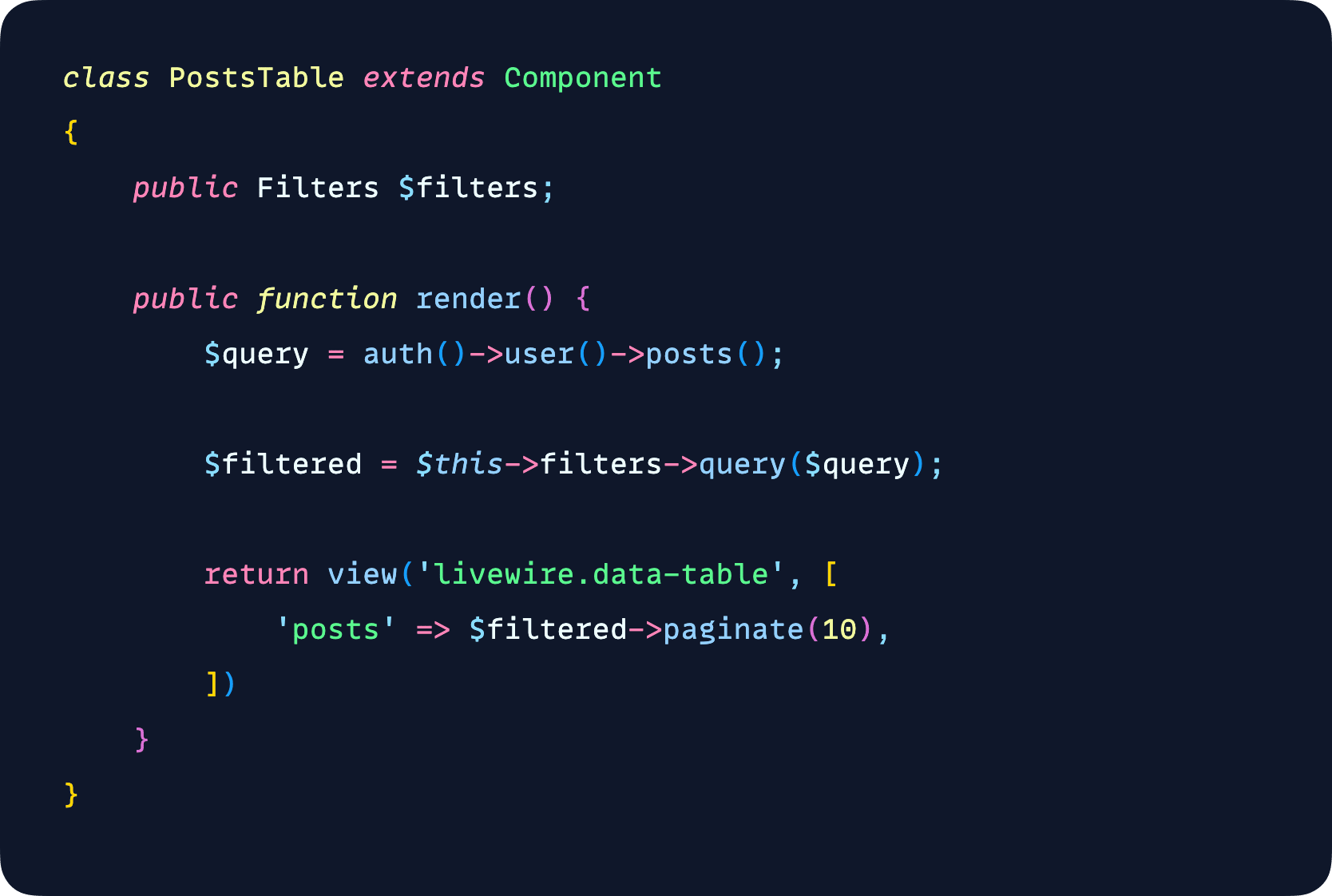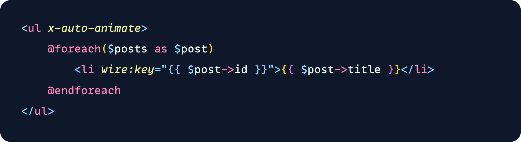 | Hey Livewire people, Comin' at you with another pile of updates, random thoughts, and tips. Highlights first: Aight, let's get to it, shall we? 🧠 Hybrid slot/props Here's a pattern I've been using lately when building some Blade components. Consider a button component that you want to be able to pass an "icon" prop for simple icons, but also a slot for custom SVGs: You can actually hack Blade components to support both by adding a little conditional. Check it out: That's just one of the many little patterns I cover in the new screencast series. Knowing Blade components inside and out is such a huge advantage for Livewire devs, and I'm so pumped to have a singular resource to point people to now: Watch the new Blade Components series → 🛵 Animating @foreach loops Here's a fun one. I recently came across a blog post by Eser DENIZ where he shows you how to use a simple tool called "AutoAnimate" to transition re-ordering of lists in Livewire. I've seen AutoAnimate before, but I didn't realize how well it works with Livewire out of the box. Like for real. It's kind of magical. Someone made an Alpine plugin that makes an easy task even easier, so that's fun too. But ya, go check out his blog post, then honestly just try it in your app. You'll be delighted. 😈 Abusing form objects When I was working on the Data Tables series, I discovered a neat pattern: Using Livewire Form objects for, well... not just forms. Form objects are actually just helpful containers for properties and behaviors, which makes them perfect for things like table filters. So check this out. Here's a "Filters" form object with some data-table-filtery properties: Now, check out how you can use this form object in a data table Livewire component to store a bunch of filter state, but also modify a query using those filters: The coolest part is that you can bind directly to the filter properties using `wire:model` and even pass the filter object down to nested Livewire components (like a chart or something). I go in-depth on this technique in the recent data tables series, so check that out if you haven't. Watch the Data Tables screencast series → 👋 Signing off Alright, that's it for now. As always, you can reply to this email with feedback, or just to say hey! Cha cha real smooth, -Caleb |