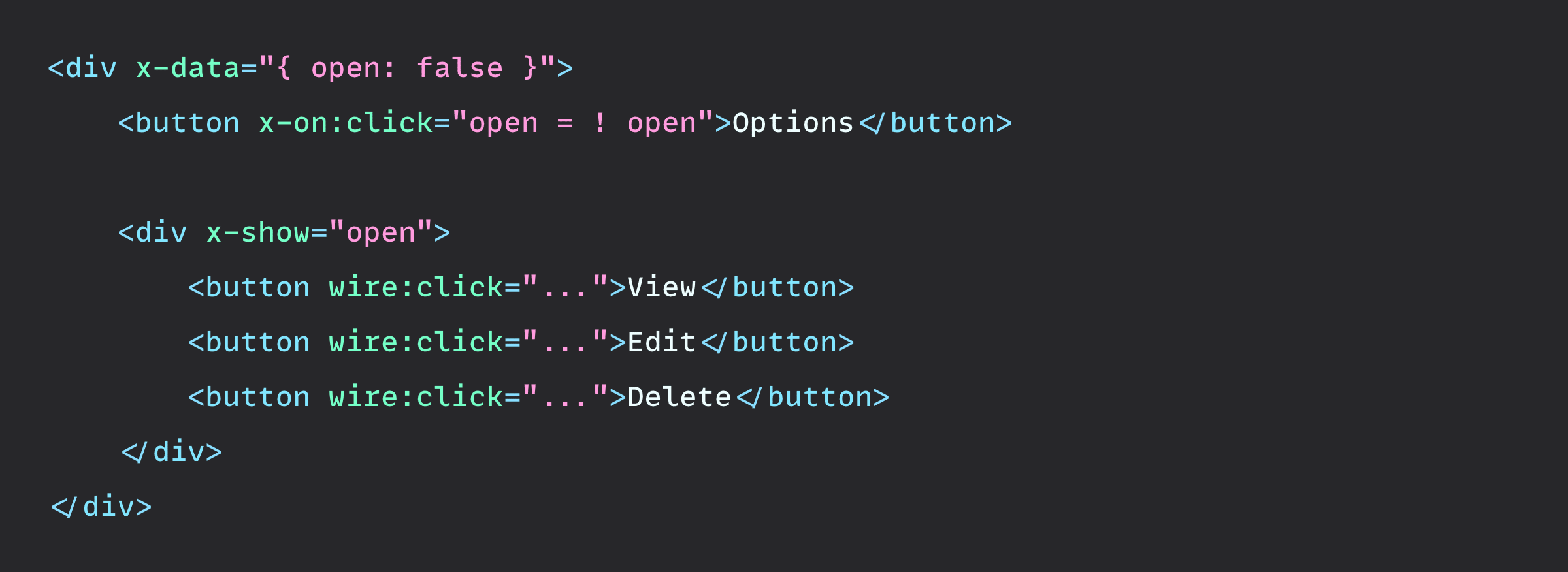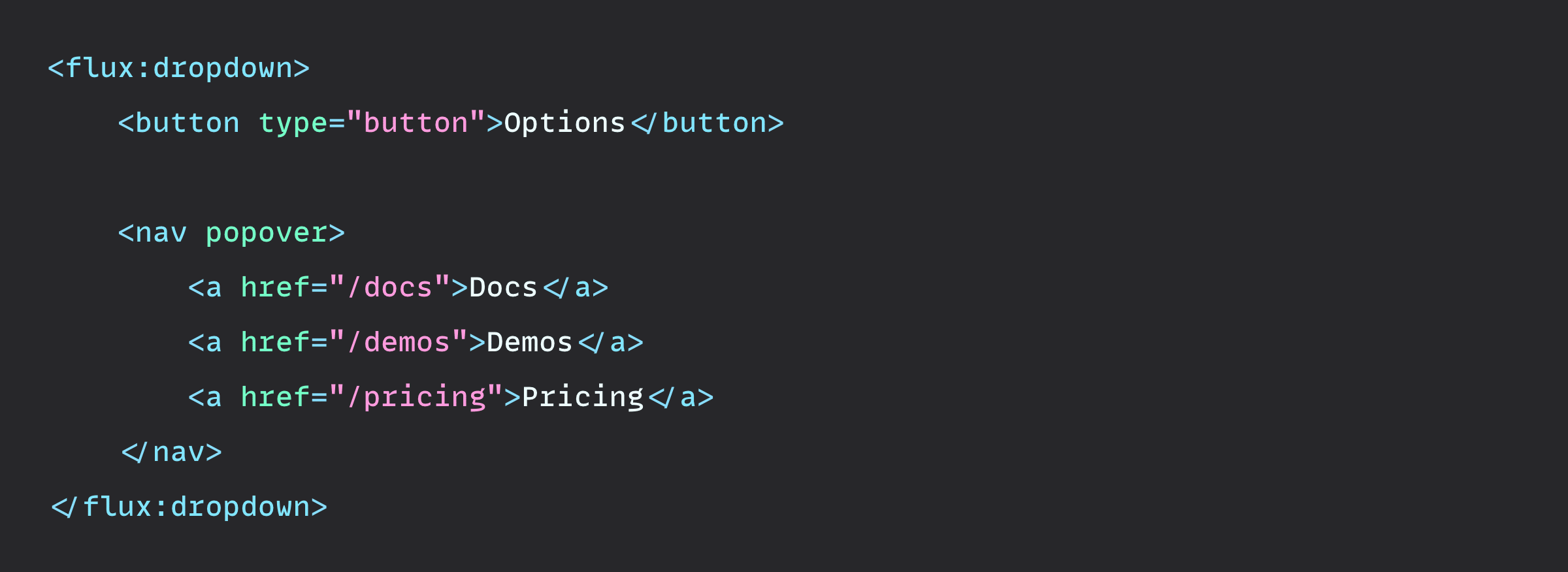 No? I get it. I literally wrote an entire JavaScript framework to make building dropdowns easy (AlpineJS), only to find out the dropdowns myself and others were building weren't actually proper dropdowns. 🤦♂️ So. When I started building Flux, I knew I had to do better. I knew Flux needed a first-class dropdown with all the woozles and doodles necessary for professional web apps. This is what the most basic dropdown looks like in Flux: How simple is that? Flux uses the browser's new "popover" attribute combined with some custom JavaScript to make a much more robust dropdown that's even simpler to write. Just pass a button and a popover element into <flux:dropdown> and you get all the aforementioned features: keyboard stuff, accessibility stuff, overflow stuff, positioning stuff, etc. Ok, so this is cool, but what about "system menus"? Or rather dropdown menus that behave more like a menu in your operating system. These are often called "action menus". Let's play the same game as before, except this time, with an "action" menu. Here's the most basic menu in Alpine: Notice, the only real difference this time around is we're using buttons instead of links. The intention of this menu is to provide "actions" instead of "navigation". Welp, turns out there's a whole new set of rules to abide by for "action menus" (in ADDITION to all the other rules):